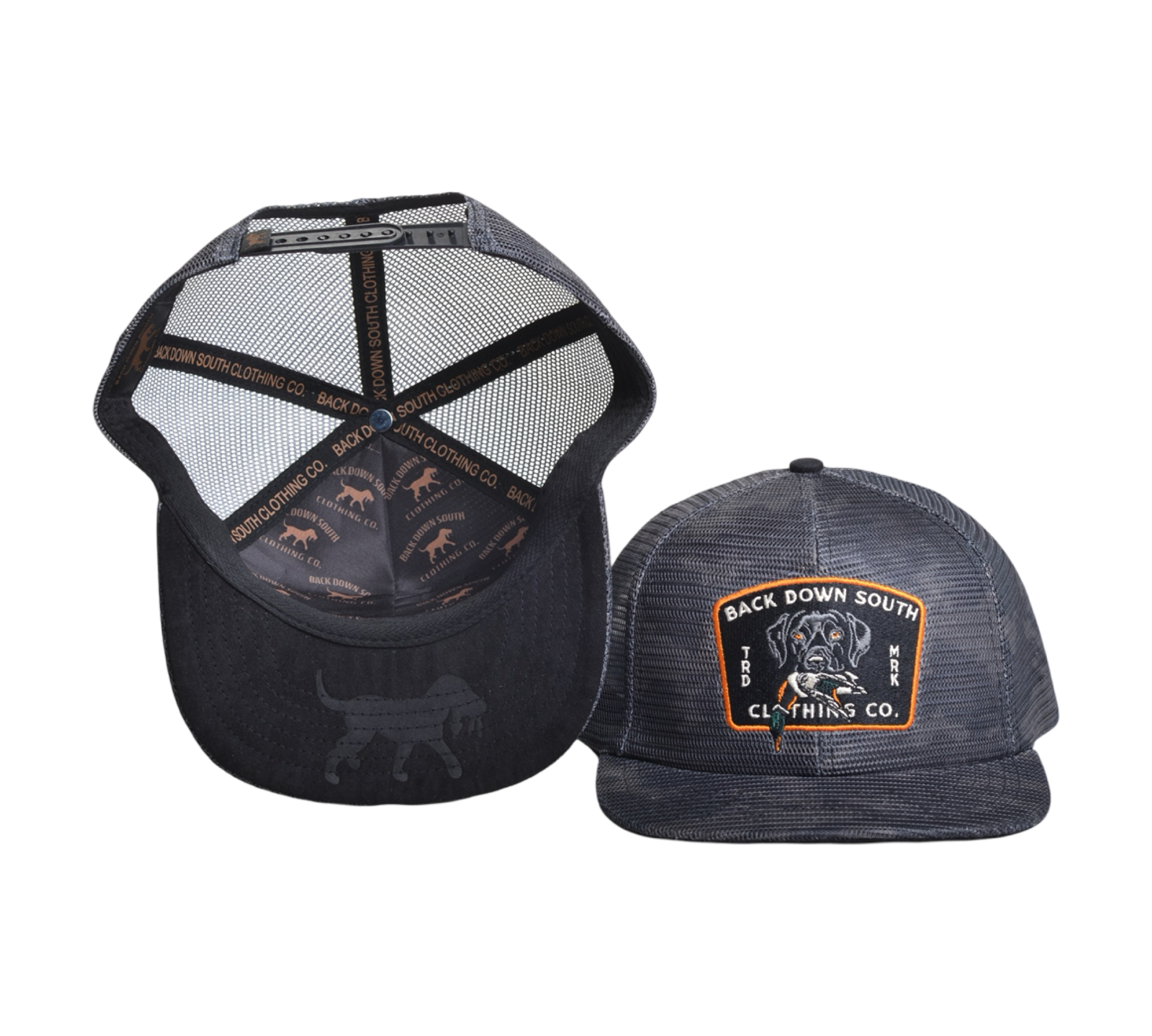 - Classic Back Down South Clothing camo patch front and center