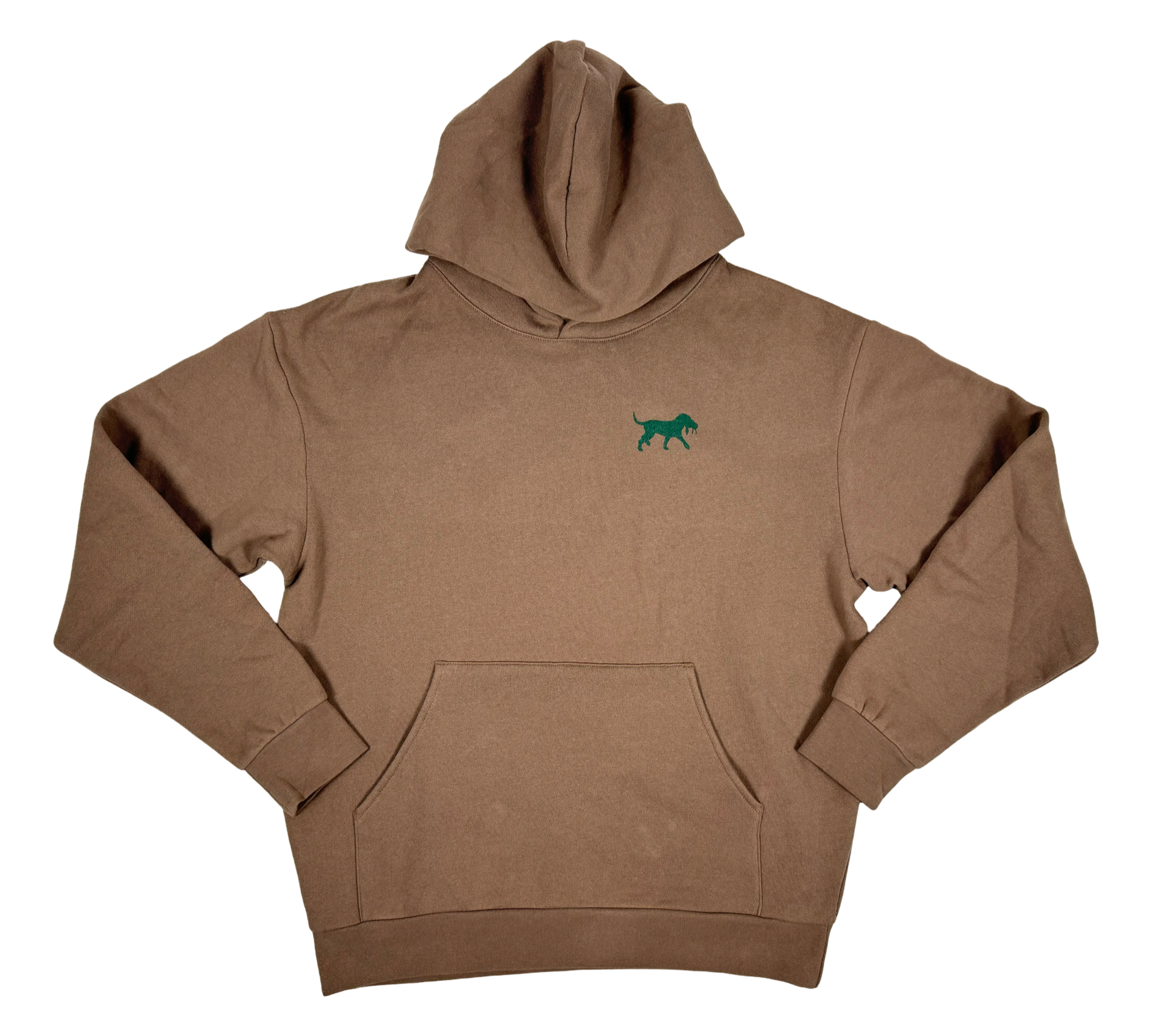 Stay cozy and stylish with our Monogram Hoodie in a warm, soft fleece material. The dirt color adds a touch of ruggedness to your wardrobe. Perfect for any casual occasion, this hoodie is sure to become your go-to choice for comfort and style.